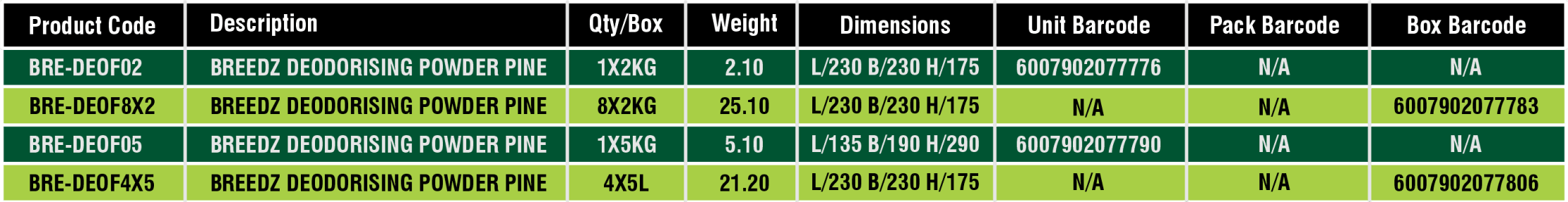 compounds, nonionic surfactants and alkali builders. Breedz Deodorising Powder Pine is highly