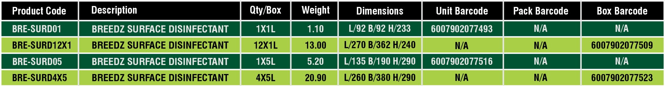 leaving surfaces effectively clean and germ free. Breedz Surface Disinfectant is highly effective