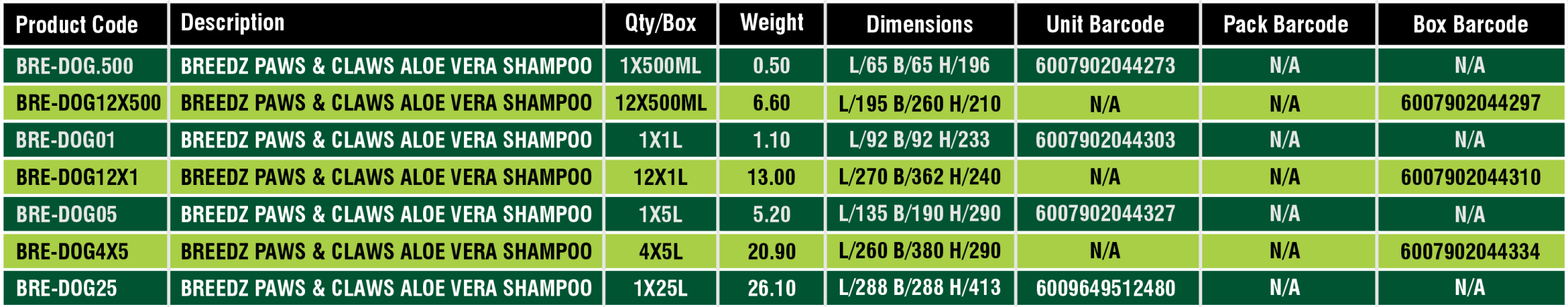 skin rashes. Breedz Paws & Claws Aloe Vera Shampoo is readily biodegradable, non-toxic,
